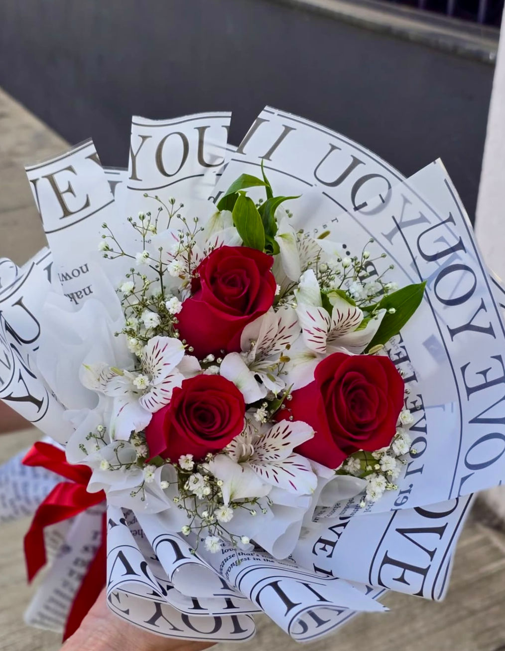 3 rosas e folhagens complementares (acompanha bilhete personalizado desde que solicitado expressamente pelo cliente)